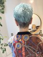 サイドと襟足を潔く刈り上げしたショートスタイルに白髪が多い部分に変化をつけたく、空色のカラーに仕上げました◎