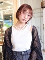 お顔周りのデザイン可愛いボブ。ベージュからレッドへのナチュラルなグラデーションカラーに。