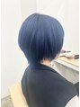 ネイビーブルー/ブリーチカラー/ショートレイヤーボブ