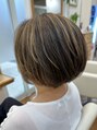 カットはハイライトがより映えるように全体的にレイヤーをいれ、軽くしました!カラーはブリーチのみの抜きっぱなしでオンカラーはしておりません。地毛とのメリハリが出て、白髪が出てきても馴染むスタイルです