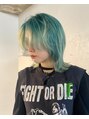 淡いミントカラーにハイライト織り交ぜたグリーンとイエローが対照的なスタイル。