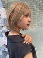 サイドバングが流れるようにフェイスレイヤーを入れた日韓ボブ。ブリーチ1,2回して色を抜いた後にベージュ系カラーでオンカラー。丸み感を出すのがスタイリングポイント。