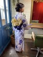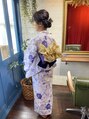 浴衣の着付けとアップスタイル。最近の浴衣は帯や帯締め等バリエーション豊富で、個性も出せてとっても素敵でした♪
