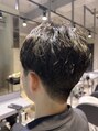 センターパート!ビジネスにも、カジュアルにも!耳周りを短くすっきりすることで1か月半持つようにしています。トップを休日は分けずにセットすることもできるようバランスを合わせてカットします♪癖を生かして、グリースでスタイリングしています。