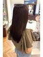 髪質、生え方、骨格に合わせたレイヤーカットをベースにフェイスラインからスライドカットで質感調整をしました。ボンドカラーバイオレットを使用しました。