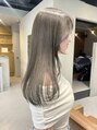 オリーブグレージュ。透明感のある寒色カラーで色落ちも楽しめます!ナチュラルだけど雰囲気のあるカラーが得意です!赤味や黄味が気になる方におすすめです!大人可愛い顔周りカットも一人一人に似合ったスタイルをご提案致します!