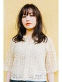 深めのブラウン系カラーにニュアンスでカールをつけて柔らかく。バングはシースルーで抜け感を出す。