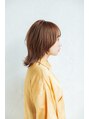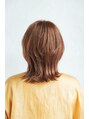 肌なじみの良いオレンジカラーに、ウルフカットを合わせて個性的に。襟足は外ハネにし、全体を丸く内巻きにいれる。ワックスで束感を作って透け感をだすと垢抜けた印象に。