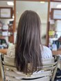 顔周りはレイヤーカットで程よく軽さを取り入れ、前髪はシースルで軽やかに髪色はネイビーとベージュのミックスで赤味のない透明感をだし大人ぽい雰囲気に仕上げました!