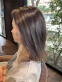 全体ブリーチしてオンカラーで塗り分けてインナーカラー風にしています。トップの髪もブリーチしておくと暗めにしても透明感がでるのを狙って全体にしています。