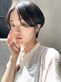 襟足はタイトに短く、前髪は長くサイドと同じ長さで流してかっこよく。トップは短すぎず骨格を選ばず絶壁の方も自然な丸み出ます。年代問わない大人の美人ハンサムショート。