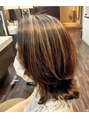 ホームカラーをされて表面が暗い状態になっていたのをハイライトで華やかに明るくなって酸熱トリートメントで癖毛が滑らかに落ち着きました腰まであったロングヘアをはねても可愛いミディアムヘアにしました