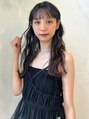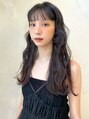 韓国ロングスタイル。重めのシルエットにワイドシースルーバングを合わせることで抜け感のあるスタイルに。カラーはオーガニックカラーのAVEDAを使ってくすみブラウンカラーに。