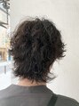 アッシュブラックマッシュパーマウルフ波巻き大人ショート