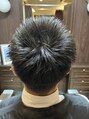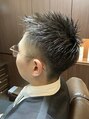 サイド、バック、地肌が白く見えるぐらい刈り上げる バリカン2、3ミリ使用 上は立つぐらい短く スタイリングはジェルで全体を立たせるようにセット