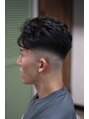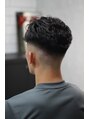 周りは高めのミドルフェードにし、サッパリと。上に残る毛をサイドバングが降りるようにパーマをかけ、ざっと後ろにスタイリングするだけでいい感じに。ワックスでもジェルでもカッコよくセット可能なスタイルです。