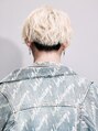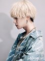 高明度のブロンドヘア。全体に無造作なスパイラルカールを。柔らかいワックスを馴染ませてほぐすことでエアリーな質感に。