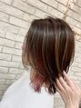 軽さのあるミディアムヘアにポイントでピンクのインナーカラーをオン!