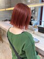 アプリコットオレンジダブルカラー暖色カラー切りっぱなしボブ/ホットペッパービューティー