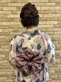ボブヘアのアレンジです。結べる長さがあれば可愛くアレンジすることが出来ます!お飾りがなくても素敵にします!お任せ下さい♪着付けは、AYAMIが担当いたしました。今回はお花をイメージして帯を結んでいます♪