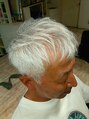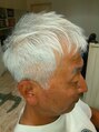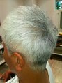 白髪を生かしたスタイルです。ツーブロックで刈上げ、トップは動きが出るようにカットし、質感調節。