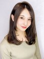 ミディアムレングスは外に跳ねやすいので、骨格の丸みに合わせながら切ることで内側に収まりやすくなっています。オリジナルのスライドカットにより質感、束間調整をすることでドライヤーだけでまとまる艶髪へと仕上がっています。赤味消し寒色系カラー。