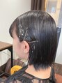 短めの#前下がりショートを外ハネとウェーブにをMIXしたスタイルです!色は赤みを無くすため寒色系です。