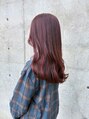 赤みやオレンジっぽさを抑えたアッシュグレージュのカラーで、髪に透明感をだしています!スタイリングはコテで韓国風に巻いてオイルで仕上げています!