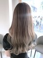 1ブリーチのバレイヤージュスタイル。ベースカラーはミルクティーベージュ、毛先はホワイトベージュです!レイヤーカットとの相性抜群なのでぜひ!