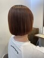 まとまる丸みボブにほんのり霞ませたシアーオレンジに仕上げました。、