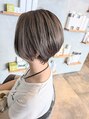 フェイスフレーミングでブリーチ施術後にシルバーグレージュカラーにして、コントラストだすように、暗髪のブルージュでカッコイイ雰囲気に仕上げました