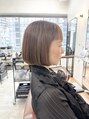 【気に入って頂いたスタイルは、ブックマークをしてご提示ください】アゴラインの前下がりボブ。丸みシルエットのボブに、ベージュブラウンが重く見えがちな硬い髪も柔らかく見えます。20代30代40代50代と幅広い年齢のお客様にご来店して頂いてます。
