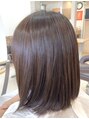 顎下ラインのやや前下がりショートボブ。メテオ酸性縮毛矯正ストレートで広がり・うねりを整え、ツヤとまとまりのある質感に