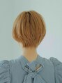 少し重めのショートボブスタイルです。全体的に丸い印象になり、カラーをハイトーンにすることによって軽さをだしています。襟足は首に沿うようにカットし、顔まわりはレイヤーをいれメリハリをつけることによってコンパクトな印象になります。