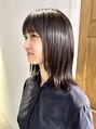 ミディアムの長さに少しレイヤーを入れて軽さをだしてます。毛先は重めにしてますが表面にのレイヤーで重すぎるないミディアムへに。