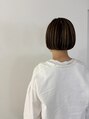 襟足ギリギリの丸みのあるボブに、表面にラインが出るようにハイライトブリーチ→カラーをし印影をつけたバレイヤージュデザインカラースタイル