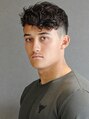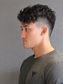 サイドをしっかりと刈り上げ、上の方は長さを残してフロントからトップにかけて少し強めのパーマ。