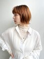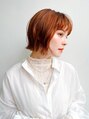顎くらいの大人可愛いショートボブ。オレンジブラウンカラーで、透明感あるふんわり感と柔らかさをプラス。ナチュラルタイプのワックスを揉み込むだけの簡単スタイリング。