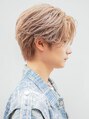 流行りのセンターパートのカルマスタイル。透明感のあるミルクティーカラーが流れ感を更に綺麗にします。初カラーにもオススメ。渋谷駅/men's/メンズカット/ニュアンスパーマ/ツイストスパイラル/フェザーパーマ/眉毛/ツイスパ/メンズパーマ/学割U24
