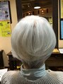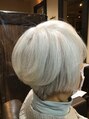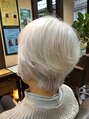 白髪のキレイなお客様です。襟足スッキリ頭頂部にボリュームが出るスタイルです。