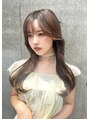 トレンドのくびれヘア。柔らかいベージュカラーで透明感を引き出します。