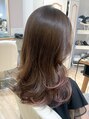 - 柔らかいラベンダーベージュカラーと顔まわりにレイヤーを入れて巻いて動きが出るように。