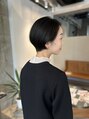 丸みのあるショートボブスタイル。えりあしのスッキリ感がより首にフィットして丸さを引き立たせています。バームやオイルを軽く馴染ませればOKなスタイルです。