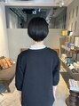 丸みのあるショートボブスタイル。えりあしのスッキリ感がより首にフィットして丸さを引き立たせています。バームやオイルを軽く馴染ませればOKなスタイルです。