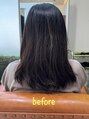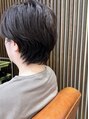 ショートレイヤー。直毛なので、全体にしっかりカールをつけて、自然なボリュームと毛先が流れるように。