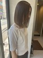 大人スタイルの切りっぱなしボブを少し伸ばしている感じです。最近は少し長めの希望も多くデザインや雰囲気、ファッションに合わせてカウンセリングをして決めていきます。グレージュですがやりすぎないカラーと髪質改善トリートメントのエアンスしました。