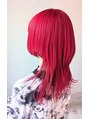 ウルフカットと潔いビビットなレッドの取り合わせです。鮮やかですが落とせる赤なので次回のカラーに影響しません#成田駅#成田美容室#京成成田#ケアブリーチ#ハイトーンカラー#ブリーチカラー#ダブルカラー#派手髪#ウルフカット