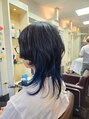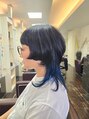 ボブベースのウルフスタイル襟足をブルーにしてデザインを際立たせてます!個性的なスタイルで周りより一歩先をいきましょう!