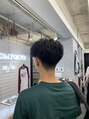 ショートセンターパートスタイルにツイストスパイラルパーマをプラスすることによってよりパーマ感と束感が出せます!カットは骨格に合わせてボリュームを抑えた巻き方をしています!