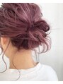 赤系カラーの【パープルピンク】女の子らしさ満点のカラーです。ブリーチした後イルミナカラーで仕上げてます
